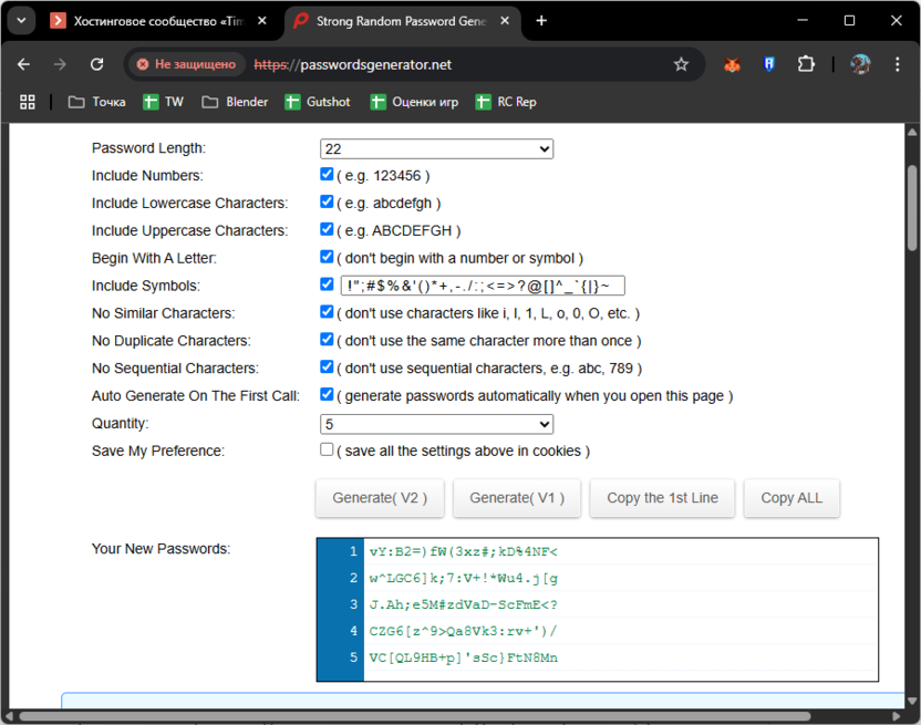 PasswordsGenerator.net представляет собой минималистичный сервис, сфокусированный исключительно на быстрой генерации паролей без лишних функций. Платформа работает с 2012 года и за это время заработала репутацию надежного инструмента среди специалистов по информационной безопасности. Однако будьте внимательны: сайт не перешел на протокол HTTPS, поэтому веб-обозреватель может посчитать подключение небезопасным.