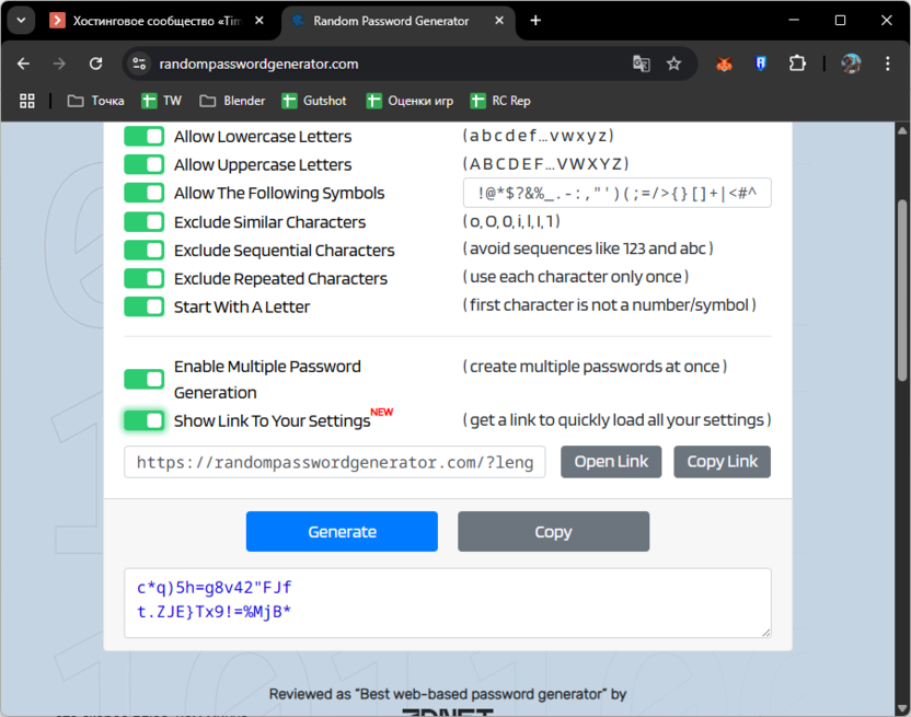 Генератор позволяет тонко настраивать параметры: длину от 4 до 50 символов, включение или исключение различных типов символов, создание легко произносимых или читаемых паролей. Интересная функция – опция «Easy to say» исключает символы, которые легко спутать при устном общении, что полезно при необходимости продиктовать пароль по телефону. Система также предлагает настройку «Easy to read», убирающую визуально похожие символы вроде 1, l, I, 0, O.![]()