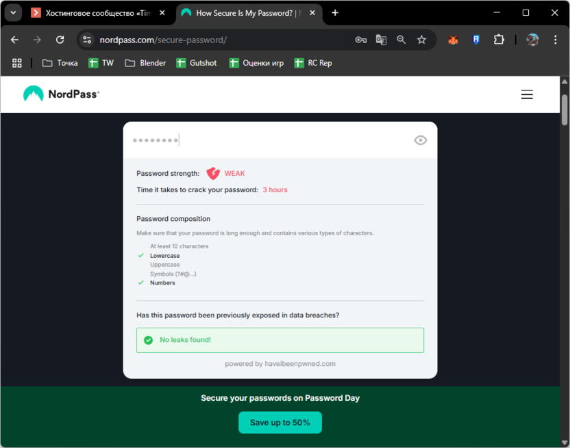 NordPass предлагает комплексный подход к оценке паролей, объединяющий несколько методов анализа в единый интерфейс. Система не только оценивает теоретическую стойкость пароля, но и проверяет его по базе известных утечек, интегрированной с Have I Been Pwned.