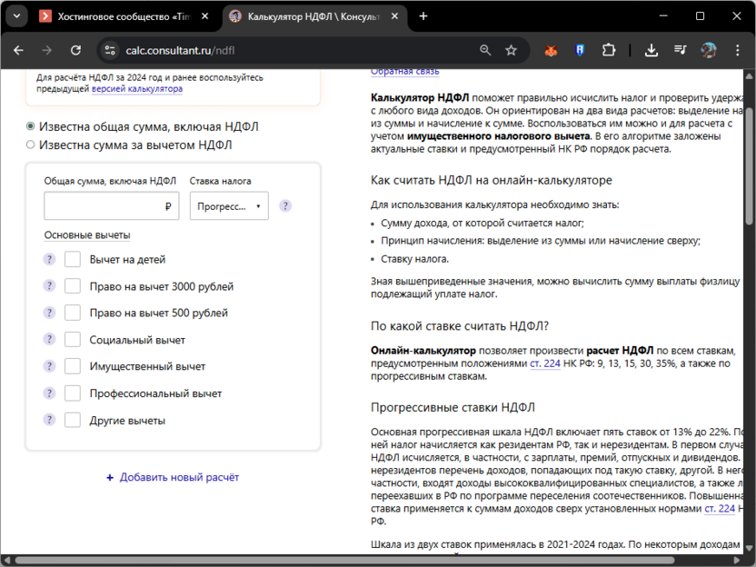 Калькуляторы НДФЛ для физических лиц