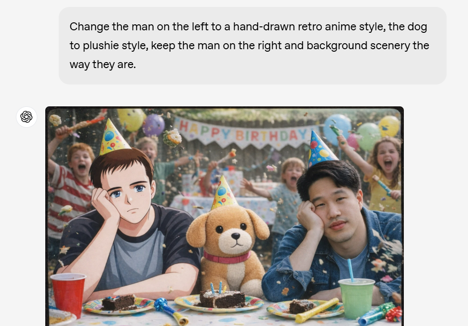 GPT Image 1.5 научилась точнее редактировать. Модель умеет менять отдельные элементы изображения и не затрагивать остальное: даже после серии правок сохраняются освещение, композиция и внешность людей. Это решает проблему прошлых моделей, когда повторные изменения нарушали исходный результат. GPT Image 1.5 одинаково уверенно добавляет, удаляет, комбинирует и трансформирует объекты, без проблем следует сложным инструкциям пользователя.