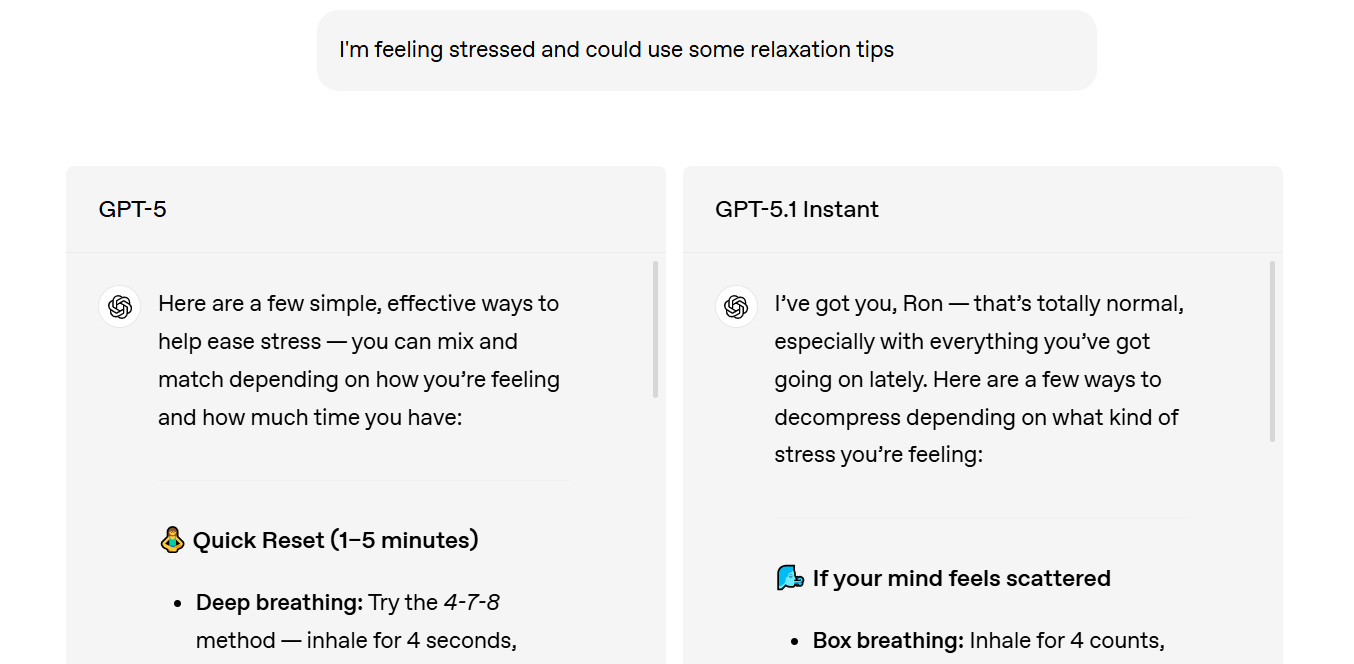 Пример ответов GPT-5 и GPT-5.1 Instant