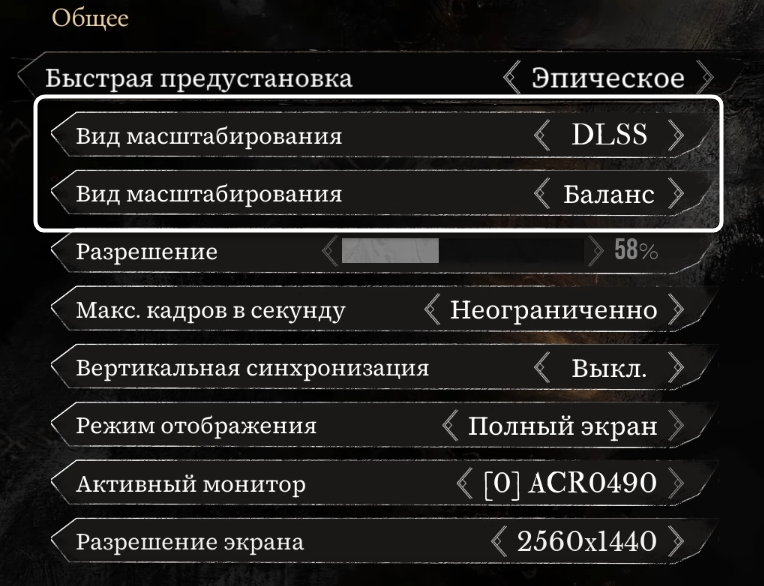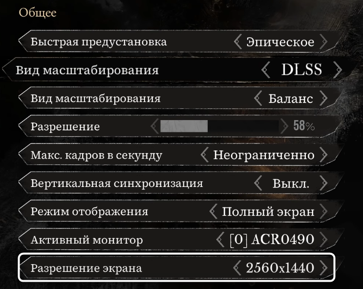 Разрешение экрана. Выбирайте нативное разрешение вашего монитора для оптимального качества изображения. При использовании технологий масштабирования (DLSS, XeSS) игра будет рендериться в более низком разрешении, но выводиться в выбранном вами нативном разрешении.