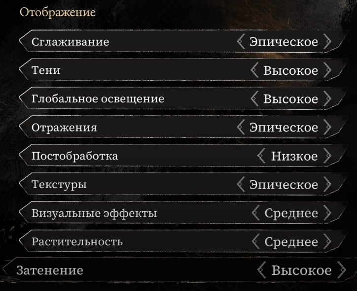 Настройки отображения – ключевые параметры, определяющие общее качество визуальной составляющей игры. Именно здесь происходит основной баланс между графикой и производительностью.![]()
