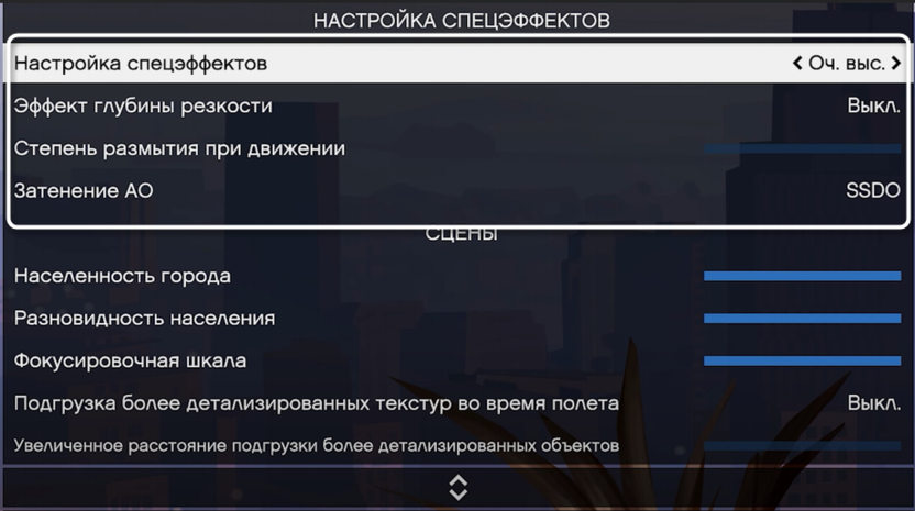 Группа настроек спецэффектов отвечает за различные визуальные улучшения, которые не относятся напрямую к геометрии или текстурам.
