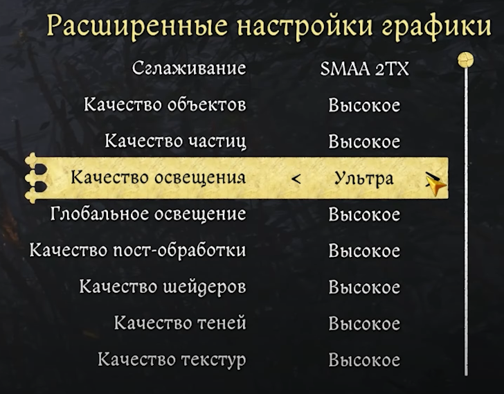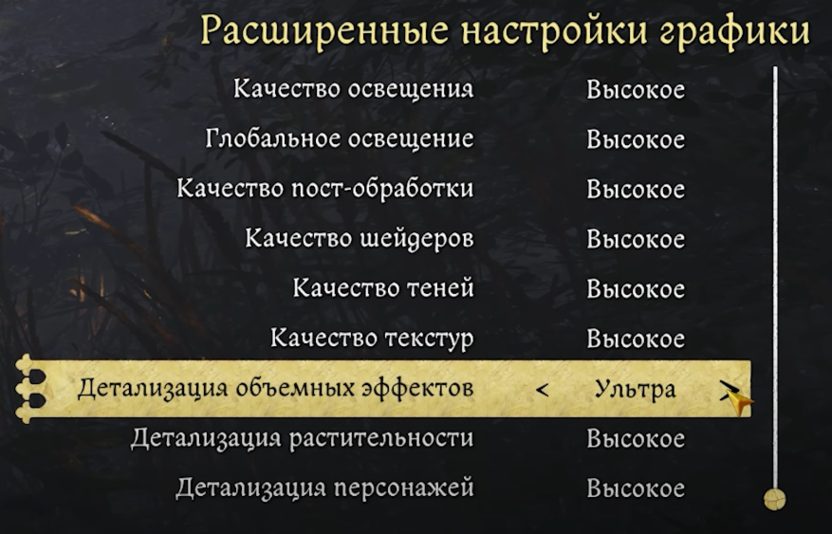 Учитывая минимальную визуальную разницу между пресетами, я рекомендую использовать низкое качество для видеокарт до RTX 3070 и высокое для более мощных. Единственное заметное влияние на производительность происходит при переходе на ультра-качество. Экспериментальный вариант делает объемные эффекты более выраженными, но требует дополнительных ресурсов.