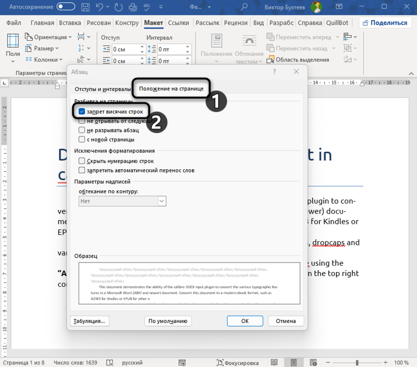 Висячие строки (одинокие строки абзаца в начале или конце страницы) нарушают визуальную целостность документа. Откройте диалоговое окно «Абзац» через правую кнопку мыши или комбинацию Ctrl + Shift + J, перейдите на вкладку «Положение на странице» и активируйте «Запрет висячих строк».