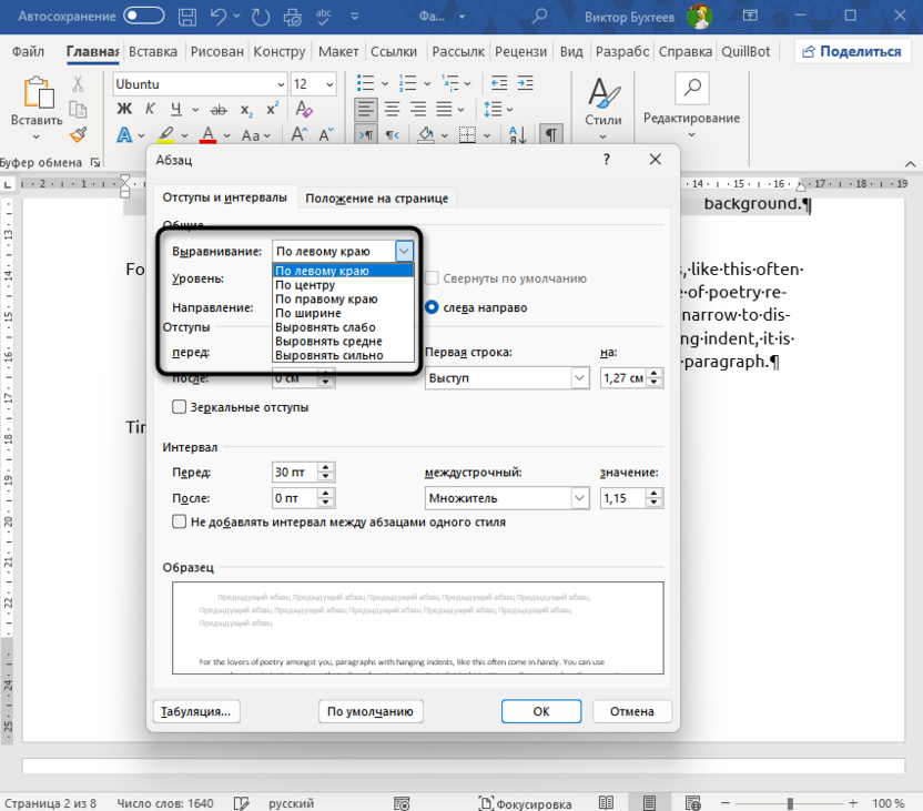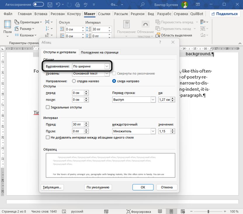 Гибкая настройка выравнивания с разными параметрами в уже знакомом окне «Абзац» позволяет более равномерно распределять пробелы, включая пространство после знаков препинания. Попробуйте несколько вариантов для вашего документа и решите, какой из типов выравнивания будет оптимальным для исправления проблем с переносами слов и расстановкой абзацев.