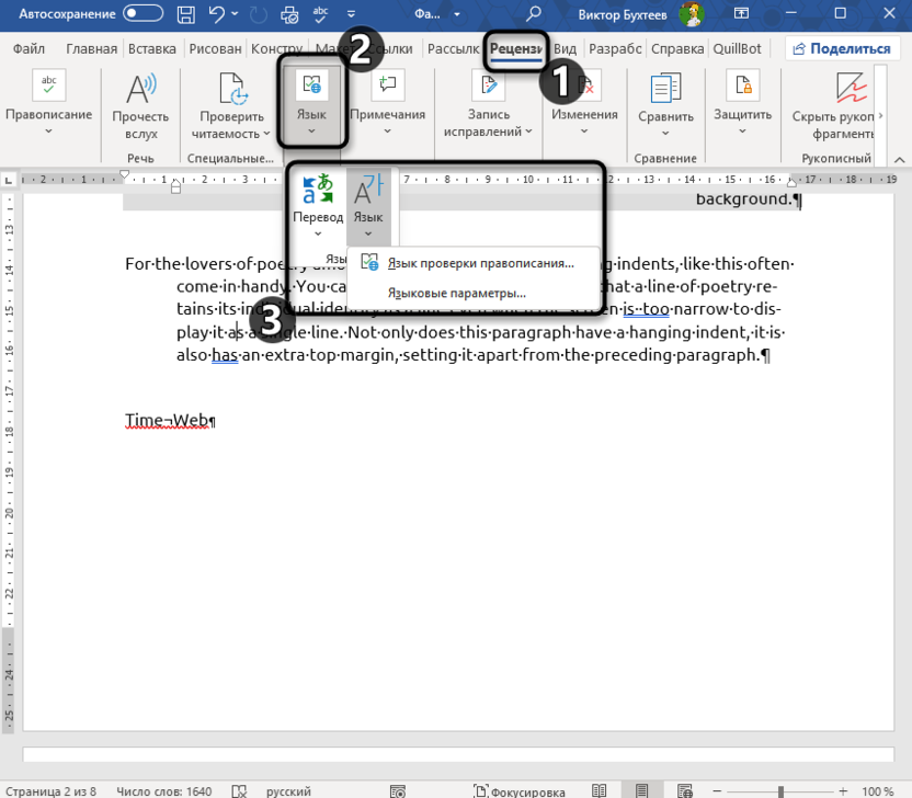 Убедитесь, что язык документа установлен правильно через строку состояния внизу экрана или меню «Рецензирование» – «Язык». Неправильный язык приводит к переносам по чужим правилам, что особенно заметно в русских текстах, определенных как английские.