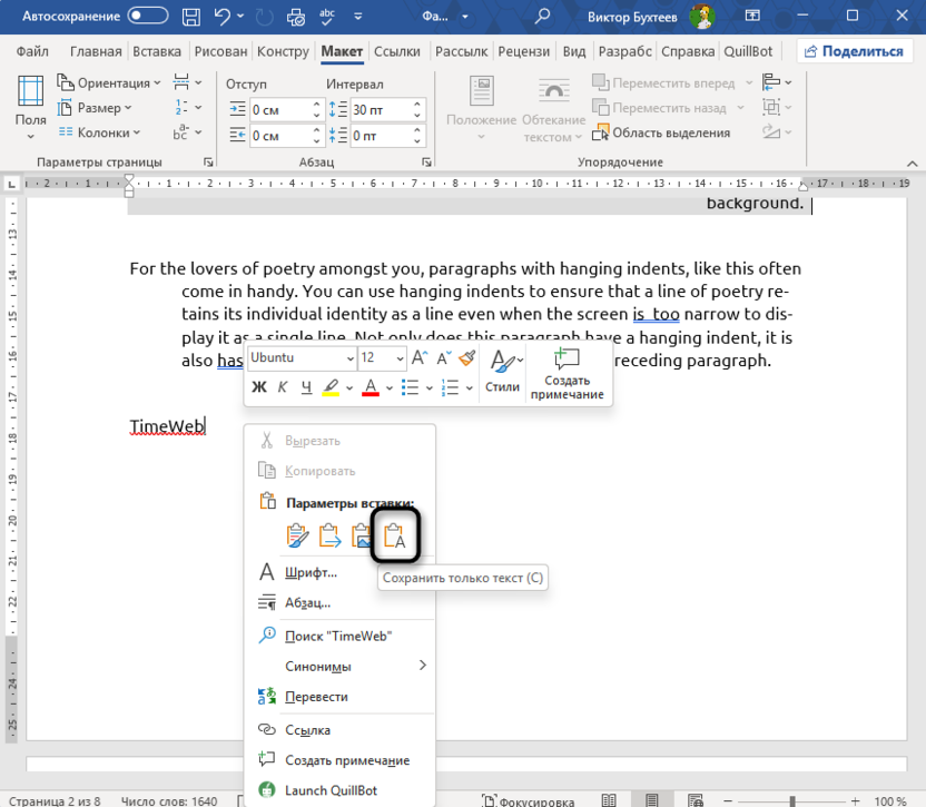 Тексты, скопированные из веб-страниц или других редакторов, часто содержат скрытые элементы форматирования, нарушающие нормальную работу переносов. Используйте специальную вставку (Ctrl +Shift + V) с опцией «Сохранить только текст» для очистки проблемного форматирования.
