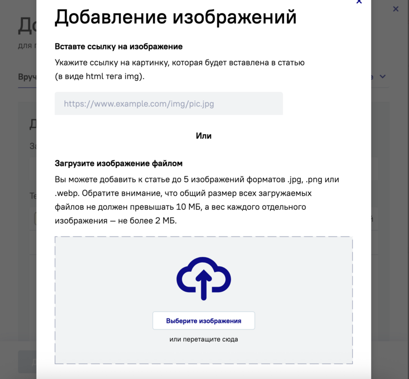 Появилась возможность загружать изображения непосредственно на этапе создания статьи.