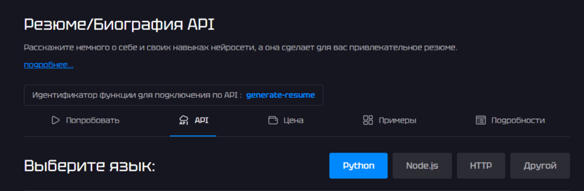 GenAPI – российский сервис с API-доступом к генеративным нейросетям для автоматизации текстовых задач. Функция генерации резюме позволяет передавать данные об опыте и навыках через запрос, а ИИ возвращает готовый результат с учетом выбранной модели и параметров. Сервис адаптирован под русский язык, поддерживает асинхронную обработку и интеграцию в приложения. Подходит как для разработчиков и компаний, так и для личного использования.