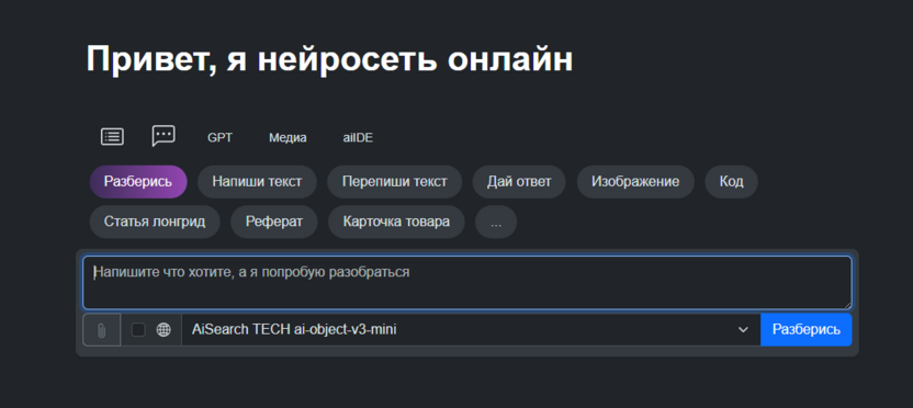 - AISearch – русскоязычная нейросеть-чатбот для текстовых задач, включая генерацию резюме по промптам. Сервис помогает писать уникальный контент, рерайт и адаптацию под вакансии.