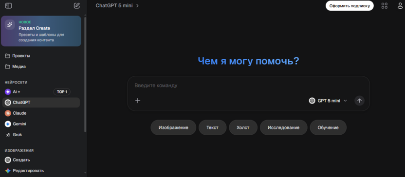 - Chad AI – крупный нейросетевой агрегатор, предоставляющий доступ к разным популярным моделям. Сервис помогает составлять деловые тексты, планировать задачи и адаптировать документ под вакансию.