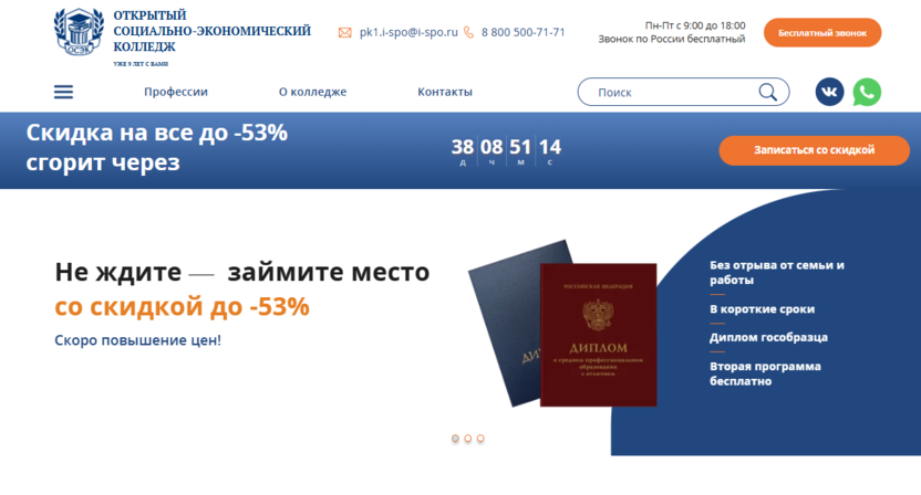 - Открытый социально-экономический колледж: два диплома, обучение через мобильное приложение, широкий выбор направлений.