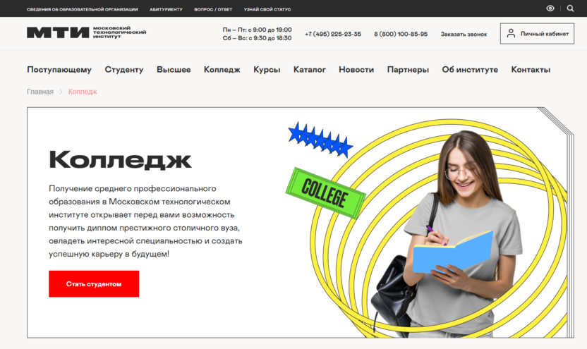 - Колледж КЭСИ: поступление без ЕГЭ, практика в крупных компаниях, сотрудничество с вузами, гибкий график.