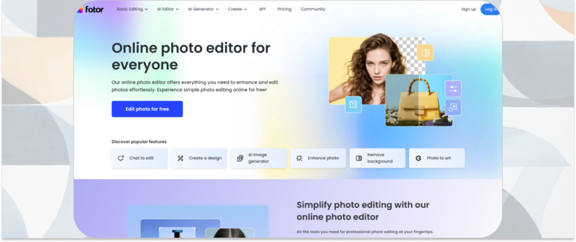 Fotor – мощный фоторедактор со встроенным ИИ-генератором, позволяющий создать аватар на основе фото в один клик.