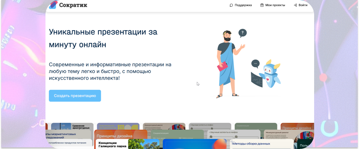 «Сократик»: российский сервис, который создаёт презентацию за минуту по тексту или загруженным файлам, автоматически добавляя структуру, изображения и графики.