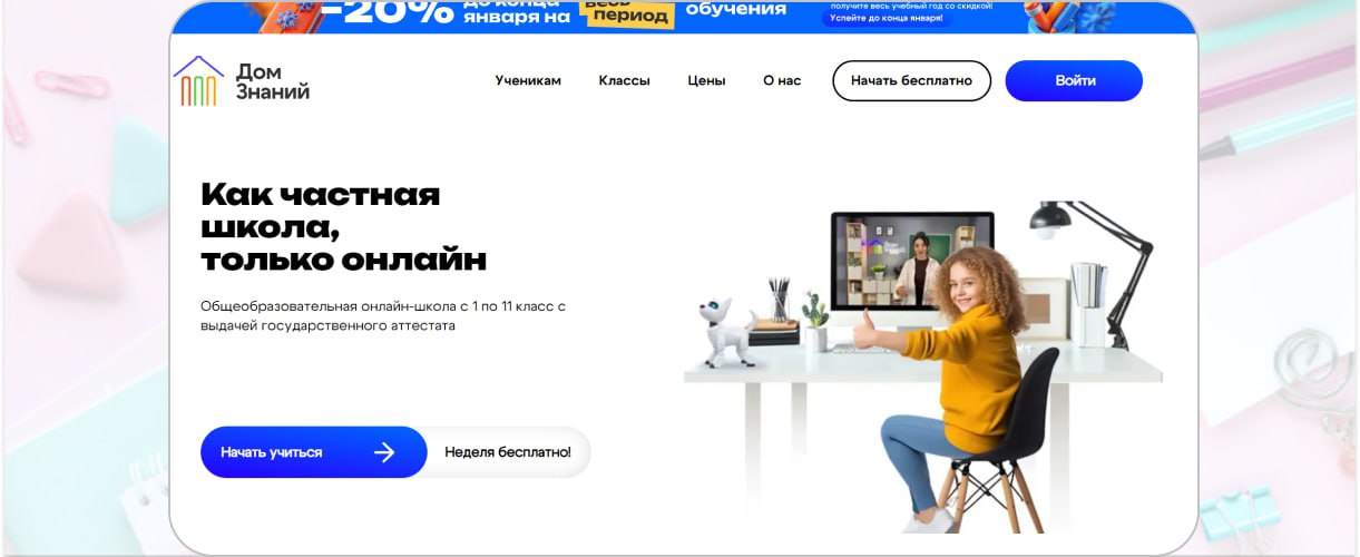 - «Дом знаний»: предлагают выбрать удобное время для занятий самостоятельно, а начать обучение можно с бесплатной пробной недели.