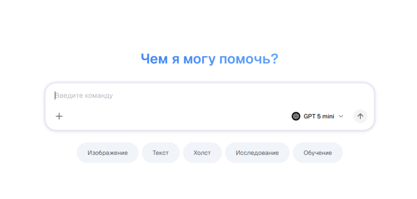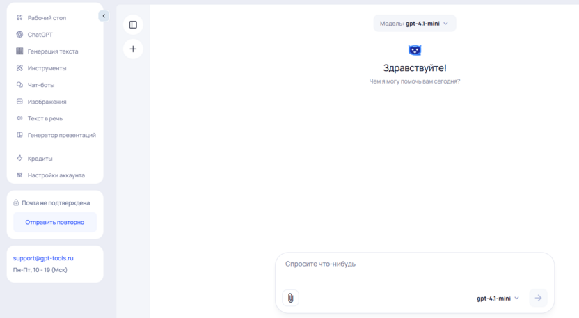 Можно выбрать модель (GPT-4o-mini / GPT-4o, есть и генерация изображений).