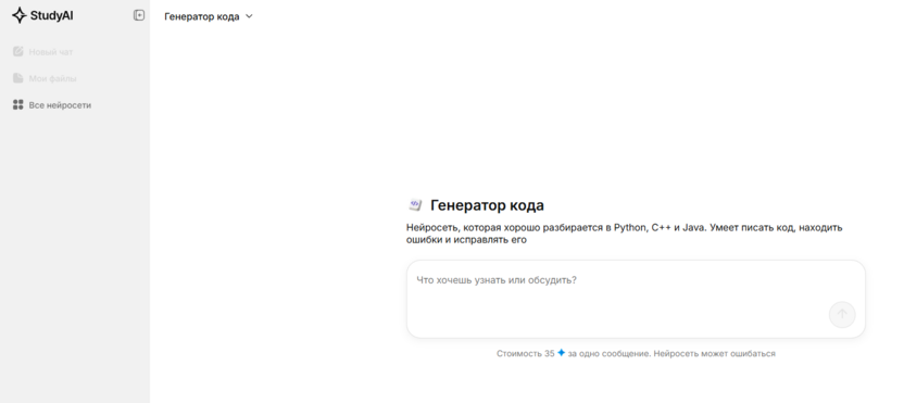 - Study AI – нейросеть для генерации кода, помогающая создавать программные решения с минимальными усилиями.