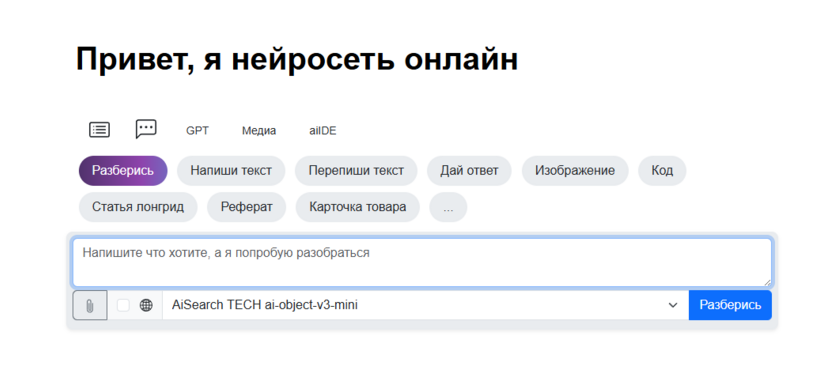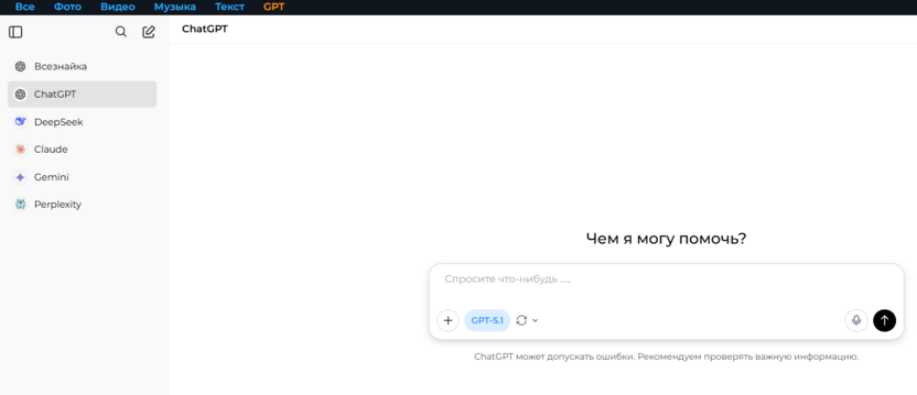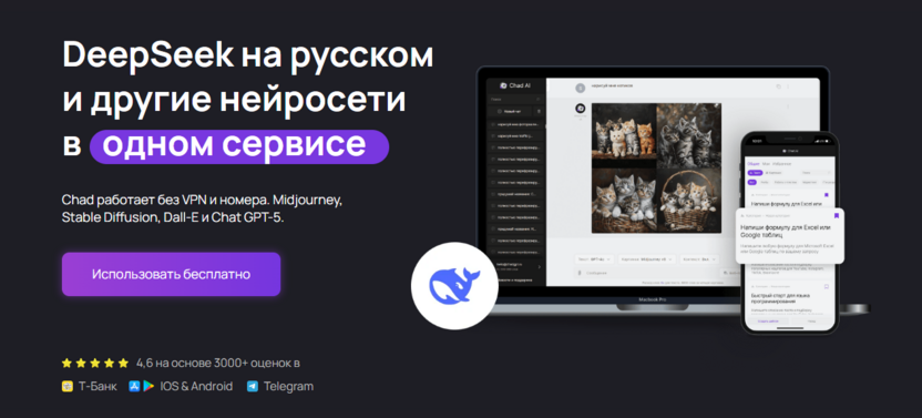 Нейросеть с доступом к ChatGPT-4o-mini и ChatGPT-4o, доступная через веб‑интерфейс на русском языке, которая помогает решать широкий спектр задач: от генерации текстов до написания и анализа кода. Платформа позиционируется как «народный» чат GPT: есть веб-версия и приложение, поддержка русского контекста, партнерская программа и техподдержка в Telegram.