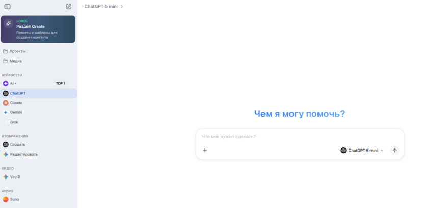 Доступ к топовым моделям (GPT-4o, Claude, Gemini) в одном интерфейсе.