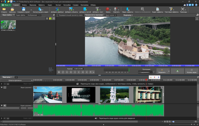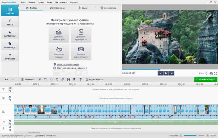 - Для семейных или учебных видео и редактировании на ПК – ВидеоМОНТАЖ. Редактор работает даже на слабых компьютерах, в нем легко обрезать кадры, добавить музыку или заменить фон. А еще можно записать себя на вебкамеру и сохранить результат в нужном формате.