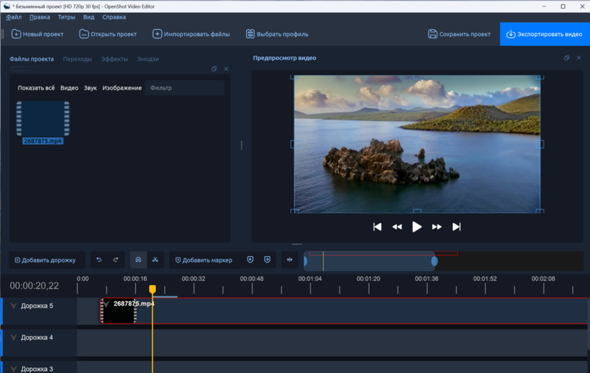 Программа с открытым исходным кодом, в которой можно накладывать неограниченное количество дорожек – например, добавить музыку, титры и несколько картинок поверх видео. Для плавного соединения сцен есть больше 400 переходов. А еще OpenShot поддерживает 3D-заголовки: подключаете Blender и делаете объемные надписи.