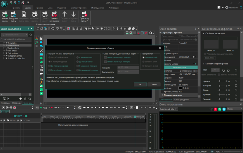 - точный контроль непрозрачности и режимов наложения для каждого элемента на таймлайне.