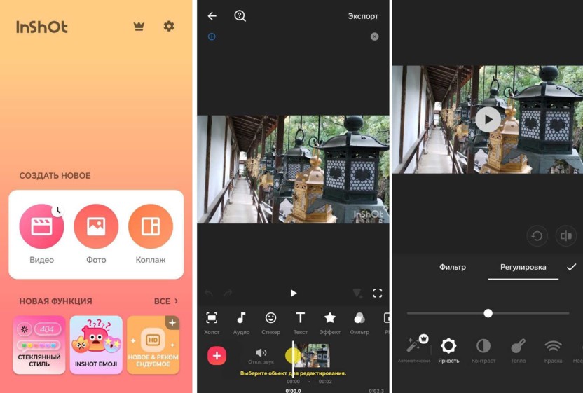 - качественный экспорт (1080p, 4K) доступен только по подписке.