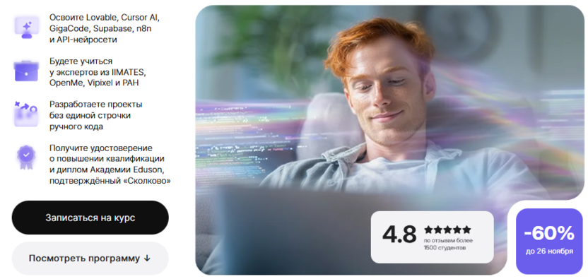 - Vibe Coding – Академия Eduson (по промокоду RATING5 скидка 5%)