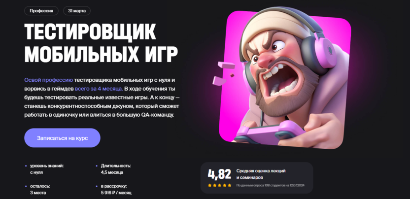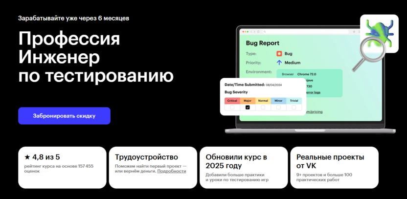 Инженер по тестированию от Skypro – дистанционное обучение тестированию игр с гарантией трудоустройства.