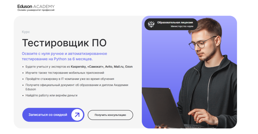 Тестировщик ПО от Eduson Academy – возможность стажировки на позиции младшего тестировщика в партнерской IT-компании.