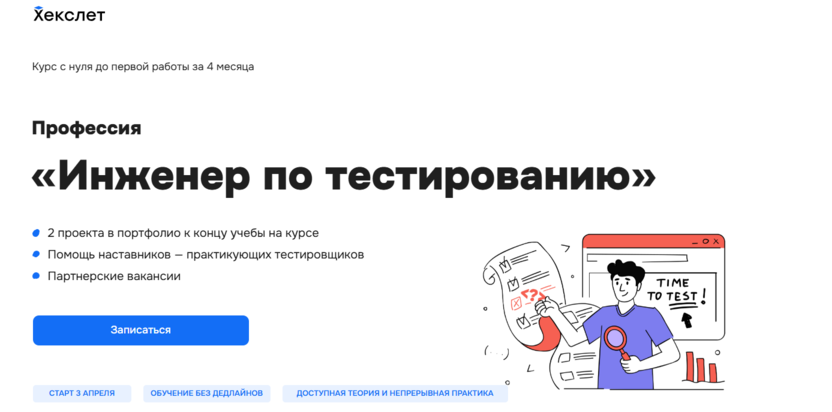 Инженер по тестированию от Хекслет – доступ к закрытым базам вакансий и комплексная помощь со стартом карьеры в тестировании ПО.