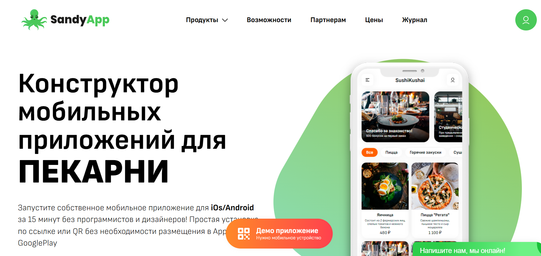 - Sandyapp.ru – лучший сервис для мобильных приложений ресторанов и кафе.