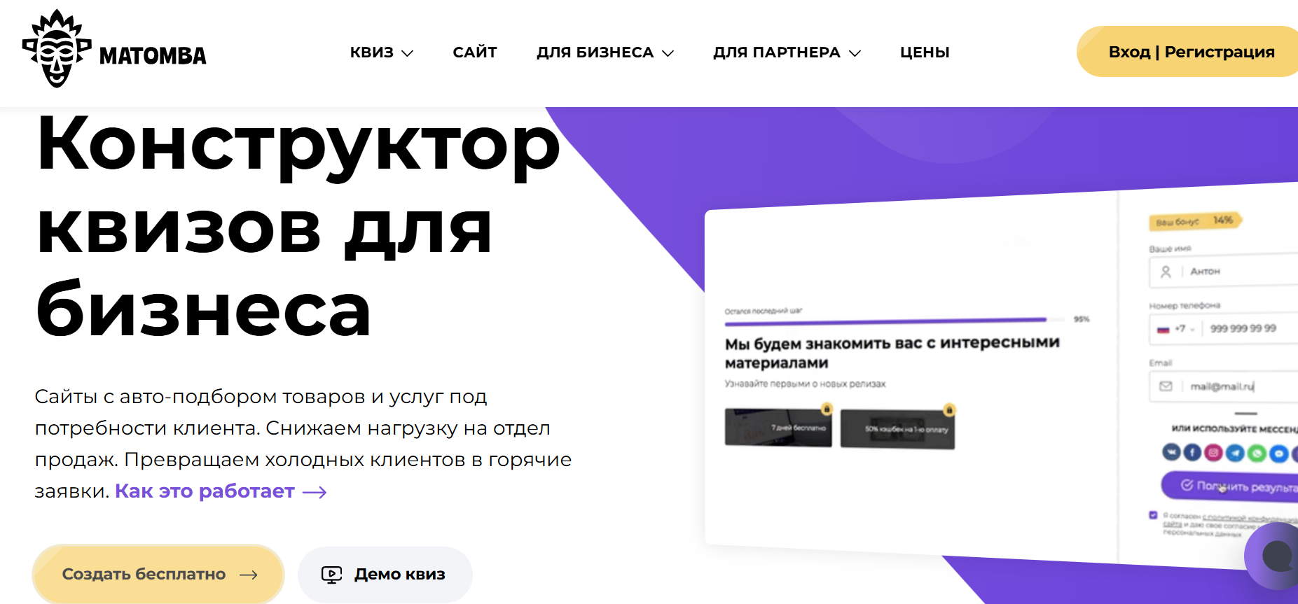 - Matomba.ru – лучший сервис для создания квизов и опросов.