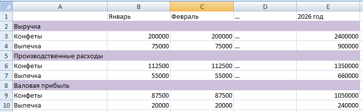 - Адаптируйте форму бюджета под особенности бизнеса. Добавляйте столбцы и строки, чтобы в бюджете было разделение на нужные вам статьи учета, направления деятельности и периоды.