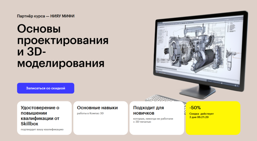 - Skillbox (Основы проектирования и 3D-моделирования): удостоверение от МИФИ, бессрочный доступ к курсу, подход для абсолютных новичков.