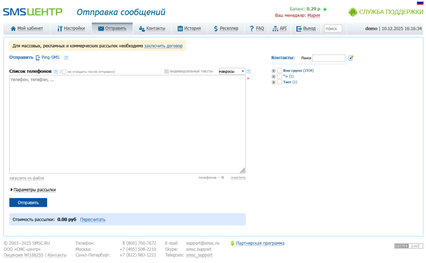 Тарифы: от 6 рублей за SMS.