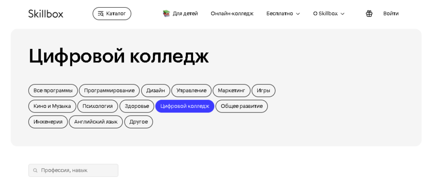 - Skillbox Цифровой колледж: 34 месяца обучения, практика по реальным задачам, три подарочных курса при записи.