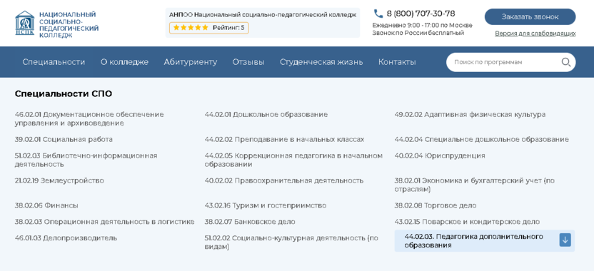 - Национальный Социально-Педагогический Колледж: получение двух дипломов, минимальный срок – от 1 года 11 мес., упор на гибкость и педагогику.