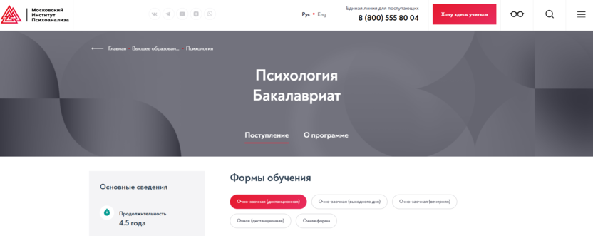 - Продолжительность: зависит от выбранной программы и может быть сокращена по желанию студента.