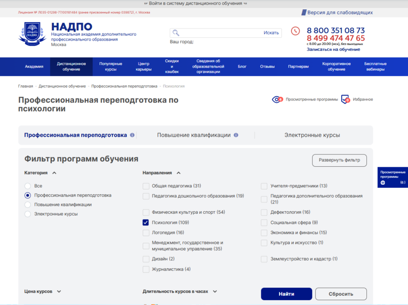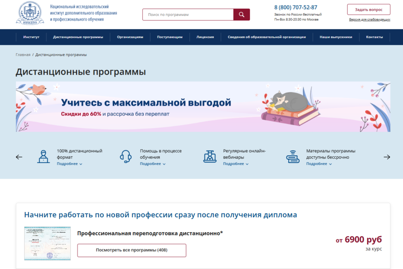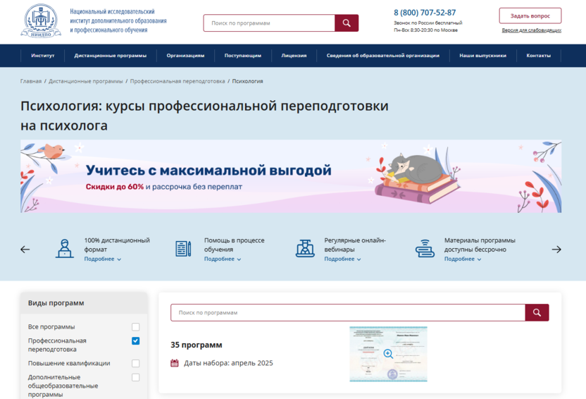 - Формат: программы реализуются дистанционно с применением видеолекций, вебинаров и интерактивных заданий.