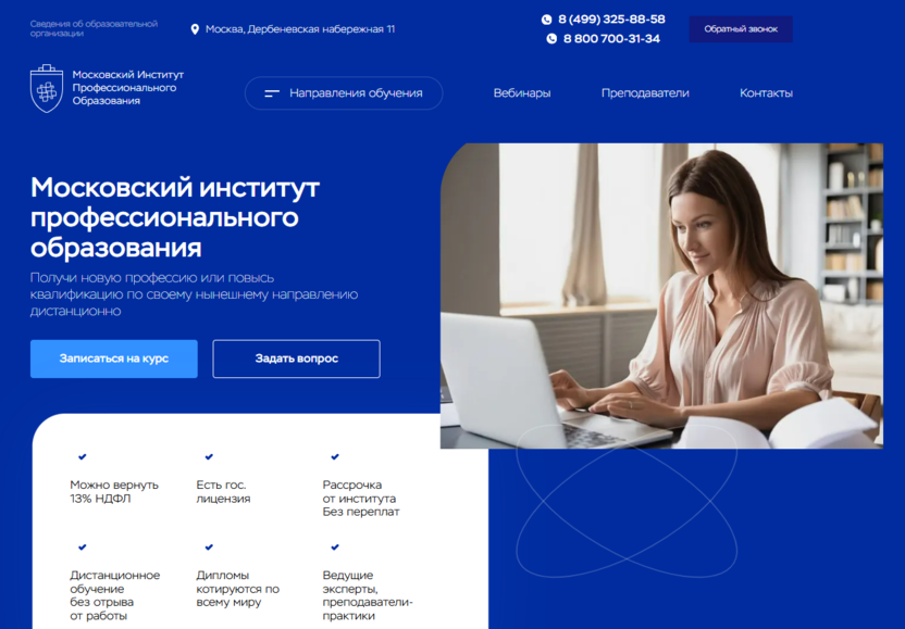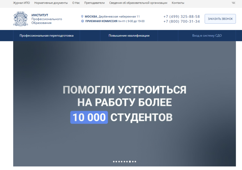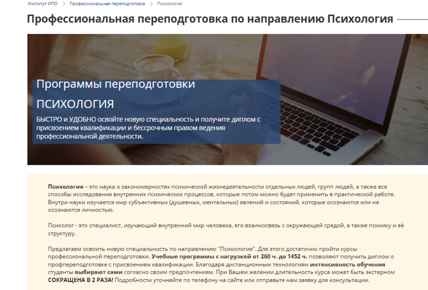 Российский институт дополнительного профессионального образования «ИПО»– это уникальная возможность быстро и удобно получить дополнительное образование или повысить квалификацию через интернет. Институт предлагает более 200 программ по гуманитарным, техническим и бизнес направлениям, соответствующих запросам современного рынка труда. Каждый студент получает персонального куратора, который помогает управлять учебным процессом и решает возникающие вопросы. Обучение можно совмещать с работой, благодаря гибкому графику и возможности изучать материалы в удобное время. Более 8000 студентов из 200 городов уже воспользовались преимуществами дистанционного образования в ИПО.