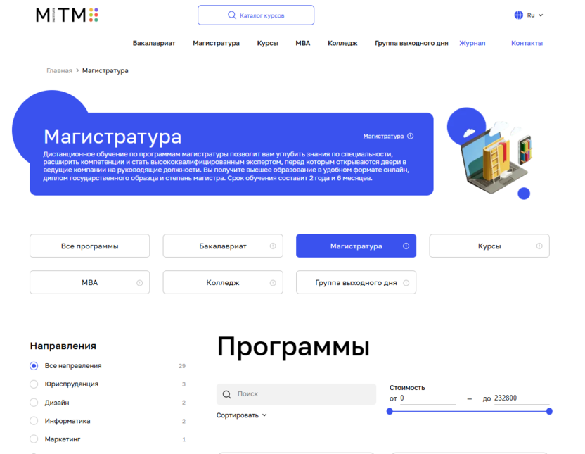 2. Онлайн-магистратура в сфере IT и менеджмента и других направлений