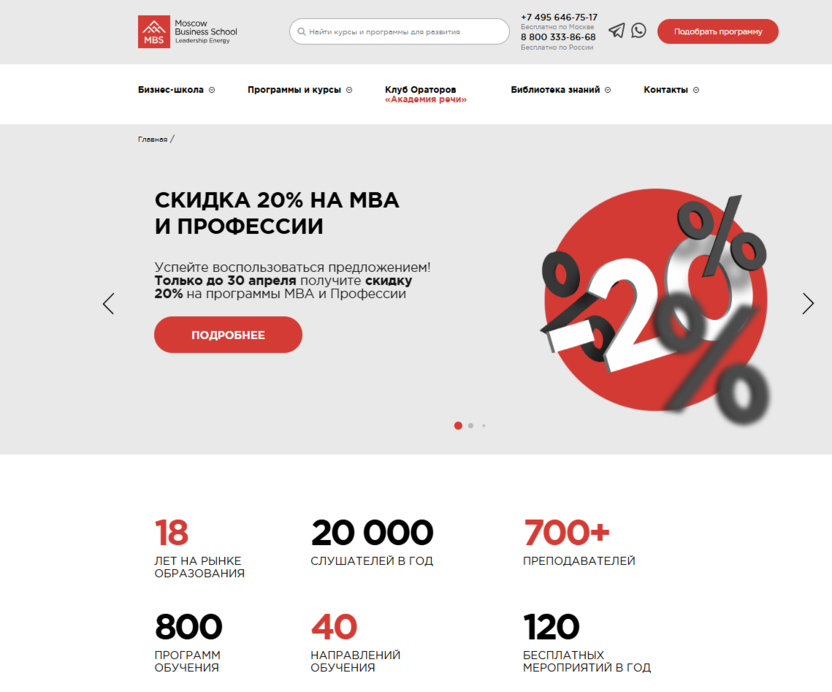 Moscow Business School – одна из ведущих бизнес-школ России, специализирующаяся на программах обучения для профессионального и карьерного роста. Учебные курсы адаптированы под современные реалии и требования рынка, что делает MBS привлекательной для широкого круга слушателей. Здесь студенты могут не только повысить квалификацию, но и получить новую профессию. Участие в учебном процессе принимают более 700 профессиональных преподавателей, что гарантирует высокий уровень знаний и навыков. Ежегодно школу проходят более 20 000 студентов, что свидетельствует о высокой востребованности и доверии к образовательной программе. Moscow Business School предлагает гибкие условия оплаты, согласуемые с работодателями, а также многие социальные навыки, включая стратегическое управление и психологию бизнеса.