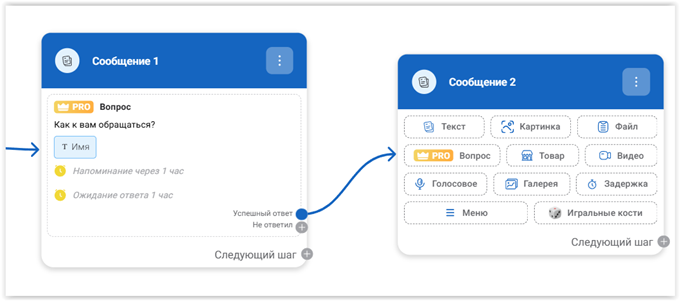 Переход к следующему шагу делаем по результату «Успешный ответ». Вот так: