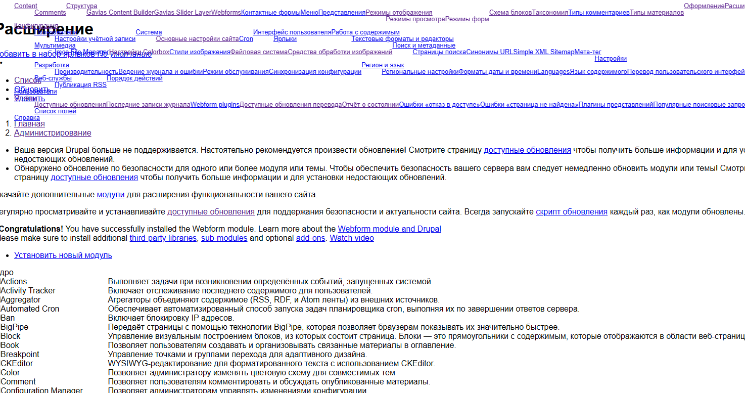 Необходимо отредактировать сайт. Сайтом не занимались 4 года. Версии и модули не обновлялись. После входа на сайт обновления ни автоматически не в ручную не обновляются. Сама структура CMS полностью не открывается. Я в этом вопросе новичок, но работу надо выполнить.