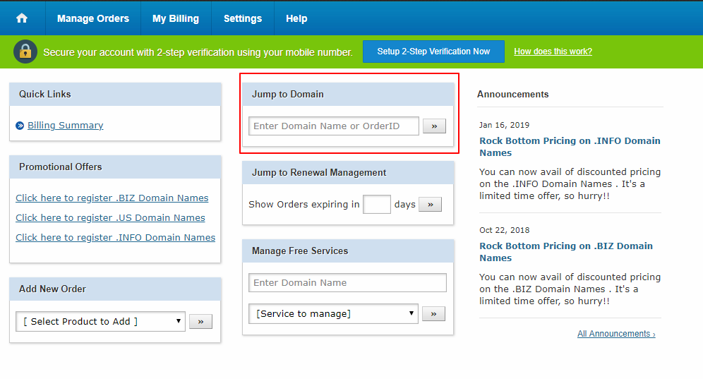 - Введите имя домена в блоке Jump to Domain и перейдите к нему: